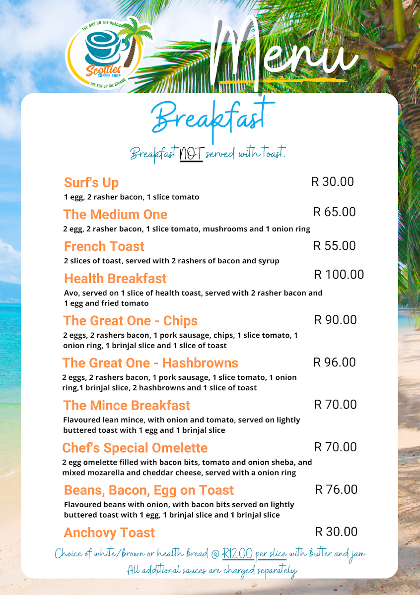 Scotties Coffee Shop Menu